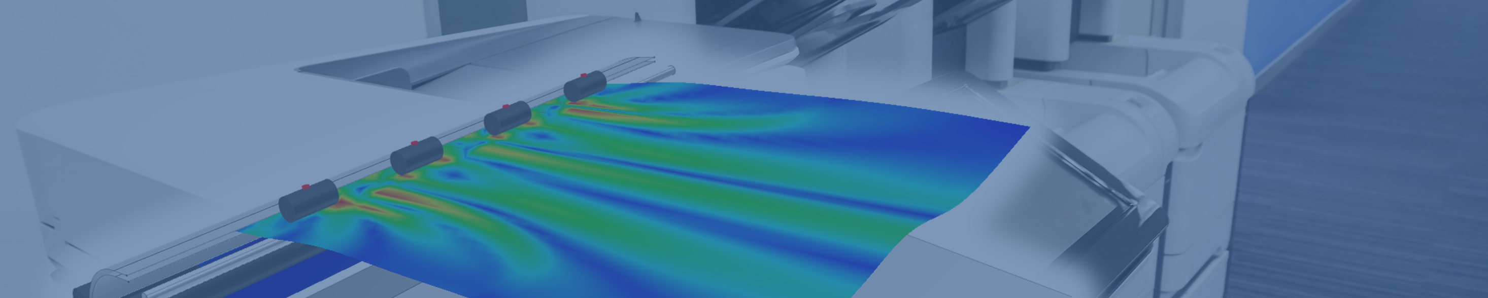 Devices that handle media, such as printers, require careful design to prevent failures such as paper jams, wrinkling, and crooked sheets. These machines also must perform complicated tasks such as sheet registration, folding, and collation. They must perform these tasks repeatedly without failure, and with varying media properties such as sheet thickness and stiffness. To avoid costly repairs and achieve customer satisfaction, many companies perform simulation to ensure their designs are optimal. RecurDyn has special modules specifically created to simulate flexible media interacting with rollers, guides, and other components.